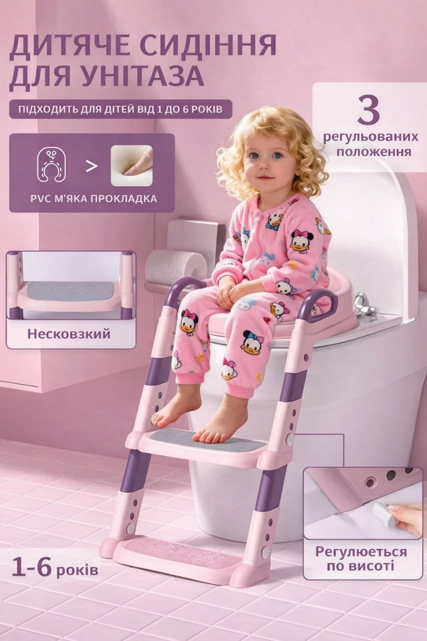 Останнє замовлення: 25 хв томуДИТЯЧЕ СИДІННЯ ДЛЯ УНІТАЗУ ЗІ СХОДИНКАМИ ТА РУЧКАМИ Допомагає дітям швидко перейти від горщика до унітазу